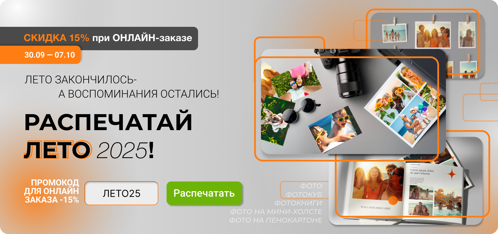 📷 С 30.09 по 07.10 распечатайте самые яркие моменты со скидкой 15%.